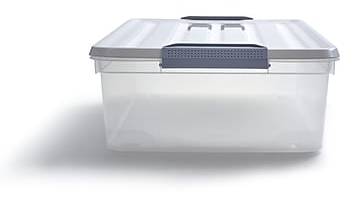 Keep bulk supplies, inventory or other workplace items secure inside this Keter 31.7-quart storage tote. Bring a durable organization option to your office with this storage tote. The generous interior offers ample space for supplies, while the hinged locking lid doubles as a tray for added convenience. A removable lid does double duty as a multipurpose tray, so you can keep items sorted on top of this Keter 31.7-quart storage tote. - Storage tote is great for organizing the home and office - Clear durable plastic offers reliability while easily viewing contents inside - Hinged locking lid doubles as a tray for added convenience - Modular, nestable and stackable to make the most of limited space - 31.7 qt. capacity - Dimensions: 23.2L x 15.4W x 7H - Lid can be removed completely or hinged using the lockable latches - Two built-in handles for easy transportation