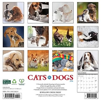 Who says that cats and dogs fight like, well, cats and dogs? These twelve superb photographs are universal examples of the virtues of friendship and affection. Stay organized in the upcoming year with a Willow Creek Press 2026 12 x 12 Wall Calendar. This calendar features large grids for easy notation of dates and events, helping you stay efficient and on top of your commitments. Let this calendar guide you to a more organized, successful and fulfilled year ahead. PERFECT GIFT - Look no further for the perfect gift for any special occasion. Make someone's year extra special with one of our 2026 Wall Calendars. Our calendars are the perfect choice for your friends or family, even for those difficult to buy for. PLANNING - Stay organized and inspired throughout the year. Ideal calendar for taking notes, recording dates to remember, tracking appointments and assisting in family activity organization. INCREDIBLE IMAGES – Crisp, detailed full-color images every month providing Wall art for Home, Office or School. LARGE GRIDS – 12 x 12 format, with large daily blocks providing ample writing room. SUPERIOR QUALITY – High quality paper stock that lays flat when hanging and offers crisp, bright colors. MONTHLY OVERVIEW – Plan ahead or look back with grids of the upcoming and previous months at a glance. - PLAN IN STYLE – Stay organized with our 12 x 12 monthly wall calendars, the perfect fit for any home or modern office. Six bonus months from July to December 2025 provide a smooth transition into the new year, while large monthly grids from January through December 2026 offer ample room for jotting notes and planning. - PICTURE-PERFECT QUALITY – Printed with soy-based inks on high-quality FSC-certified paper, our large format 12 x 12 wall calendars offer smooth writing, crisp readability, and vibrant imagery, making them a welcome accent to any space. - EFFORTLESS SCHEDULING – Enjoy ample space to note events, track appointments, and easily organize activities. Manage busy schedules at-a-glance with clearly noted moon phases (CST), holidays, and observances. - PERFECT GIFT – Find the ideal gift for any occasion with our 2026 Wall Calendars, the perfect birthday or holiday gift for hard-to-shop-for friends and family. ECO FRIENDLY – Willow Creek Press is committed to eco-friendly efforts to make our products more sustainable, our 2026 12 x 12 wall calendars are printed with soy-based inks on high-quality FSC certified paper for smooth writing. DATE RANGE - 2026 Wall Calendar with 6 bonus months from July-December 2025. BONUS FEATURES –US and International holidays and moon phases (CST) noted on each month for easy tracking. This year can be your most successful yet, with this beautiful and brilliant wall calendar. Learn how to become a highly effective person, one month at a time!