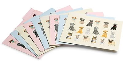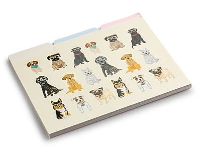 Set of 9 letter-size file folders with playful dog designs and spot UV accents. - Includes 9 folders (3 each of ivory, light blue, and light pink designs) - Matte laminated 300 gsm paper with spot UV embellishments - Standard letter-size (11.75 x 9.5) for organizing documents