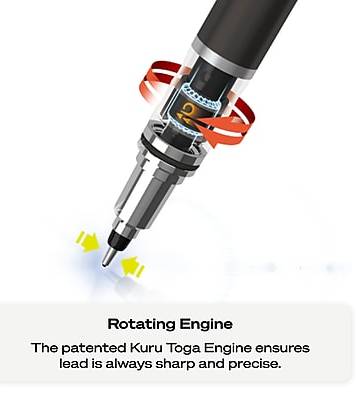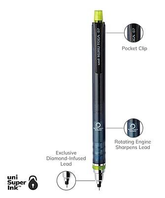 0.7mm mechanical pencil starter set includes mechanical pencil, two eraser refills, and a pack of lead refills. The uni-ball Kuru Toga mechanical pencil starter set includes mechanical pencil, two eraser refills and a pack of lead refills. Pencil has 0.7 mm diamond-infused lead that creates dark and vivid lines while resisting breakage. It features an exclusive and patented rotating mechanism that retains a continuous sharp point making it perfect for intricate writing tasks. This refillable mechanical pencil has reduced dull spots on the lead to ensure clear and more precise handwriting. - 0.7mm mechanical pencil with an eraser has a patented rotating mechanism that maintains a sharp tip - A 0.7mm #2 lead produces smooth lines that help you write clear text and create vivid graphics - Extra durable diamond-infused lead is stronger than standard lead, delivering strikingly dark marks - Refillable lead pencils are useful for school work, art projects and note-taking - Easily correct mistakes with a replaceable eraser - Convenient clip ensures that your favorite mechanical pencil is always at hand