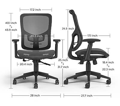 Gain full use of your workstation with the fully mobile Kroy ergonomic mesh task chair. Upgrade your workspace with this durable chair that helps you focus and stay cool all workday long. With a breathable mesh back and seat, plus supportive cushions, this black Kroy black task chair will help you work in comfort no matter the task. Adjustable lumbar support, seat- and arm-height adjustments, tilt locking tension knob, and durable casters on a sturdy five-point base will let you customize this chair to your personal comfort level. This Kroy task chair is a great value that will help you work more effectively, in style and comfort. - PACKAGING MAY VARY, SAME GREAT PRODUCT. - Task chair is a smart addition to any office space - Features mesh back with mesh seat; comes in black - Overall dimensions: 41.1 - 44.9 in H x 28.7 in W x 27.6 in D ; Seat dimension: 18.9-22.76H x 19.59W x 16.54D - Arms with adjustable height allow you to fit the chair to your body - Swivel-tilt with adjustable tension control for comfort - Features adjustable seat and arm height, lumbar support, tilt tension, and tilt lock - Support up to 275 lbs. - Assembly required - Meets or exceeds ANSI/BIFMA standards - 5-year manufacturer limited warranty - Product Instructions