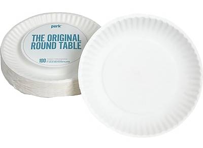 Use the original round table for portable feasts with these Perk™ Economy 9-inch white plates. Serve up meals made for knights as well as days with these economy plates, and clean up quickly by simply tossing them in the trash. The light-weight construction Perk™ Economy 9-inch white plates come 100 in each pack and can handle your salad selection or sandwich. - Plates make clean up easy - Comes in white and made of paper - Dimensions: 9Dia. - 100 plates per pack - Makes cleanup simple - Provides strength for light-weight service and dry foods such as sandwiches, cookies and chips