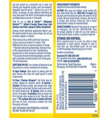 Empower staff and customers to disinfect the surfaces they choose with a portable to-go pack of Lysol® Disinfecting Wipes. Lysol® Disinfecting Wipes can be used on a variety of surfaces, including electronics. These wipes kill 99.9% of viruses and bacteria, including the virus that causes COVID-19 when used as directed on hard, non-porous surfaces. - Kills 99.9% of viruses and bacteria, including cold and flu viruses, Salmonella, E. Coli, MRSA, RSV, Staph, and Strep, when used as directed on hard, non-porous surfaces. - Proven to kill the virus that causes COVID-19, in 15 seconds. - In accordance with the EPA's Viral Emerging Pathogen Policy, this product can be used against Monkeypox, when used in accordance with the directions for use. - Maintain disinfected commercial spaces across a versatile range of industries, including schools, hospitality, office workspaces, fitness centers, and stadiums. - Safe to use on high-touch germ hot spots, including electronics, doorknobs, handrails, faucets, phones, and keyboards. - Uphold safety standards: Meets OSHA’s Bloodborne Pathogens Standard. - Grant customers the benefit of disinfecting their own spaces with the to-go flatpack you can offer as an added amenity. - Remind customers and staff that disinfection is your priority with the fresh Lemon & Lime Blossom® scent.