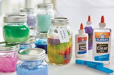 Work on everyday projects and class assignments with this Elmer's school glue. Use this school glue for producing crafts, creating group projects, and working on other tasks. The nozzle makes dispensing simple and offers even application, while the twistable design helps to keep contents fresh and prevents this glue from drying out. This Elmer's glue features a washable formula, so you can easily wipe away spills, remove residue from clothing, and clean up other messes. - Make slime and bond materials like paper, wood, fabric and ceramics - Safe, washable and non-toxic - ideal for children - No-run formula is adjustable before setting and dries clear - The #1 teacher brand, it's great for arts, crafts and school projects - Smooth, classic white glue formula is perfect for making slime at home or in the classroom! - Washable glue for use on porous and semi-porous surfaces - Meets or exceeds ASTM D-4236 standards - Capacity: 4 oz. - Safety Data Sheet Attach items to paper, wood, cloth, pottery, and more with the non-toxic adhesive of Elmer's Washable School Glue. Specially formulated to be washable and easy to use, Elmer's School Glue is perfect for school projects and home arts and crafts. Elmer’s School Glue is adjustable before setting and does not run, delivering reliable results with every use. You can also use your liquid glue to create glue slime!