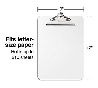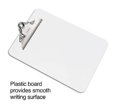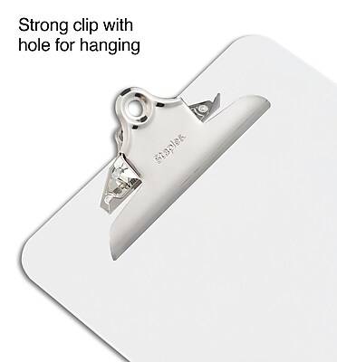 Securely hold medical charts, forms or sign-up sheets with this Staples plastic letter-size 8.8 x 12.4-inch clear clipboard. Fill out forms on the go by using this Staples letter-size clear plastic clipboard. This clipboard is constructed from sturdy plastic to provide durability, while the convenient 8.8 x 12.4-inch size makes it perfect for holding any letter-size forms or charts. This Staples letter-size clear plastic clipboard has a sturdy spring clip to ensure that individual pages don't fall out. - Clipboards allow you to write in comfort without a desk - Letter-size clipboard - keep documents in place - Made of high-quality clear plastic for maximum durability This sturdy plastic clipboard lets you take documents with you on the go to be signed on-site or to take notes wherever you are. The clear surface lets you flip the clipboard around to look at the back side of a document without unclipping the piece of paper. Durable and Reliable This durable clipboard holds up well to normal wear and tear. A sturdy spring clip holds your papers securely in place, preventing your documents from being lost. Convenient Size At 8.8 x 12.4, this clipboard is just the right size to hold standard letter-size documents. The clipboard is also lightweight, so it's easy to carry.