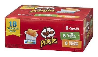 Give staff and office visitors tasty refreshment choices with this Pringles Crisps Snack Stacks variety pack. Add a crunchy side to lunches or satisfy cravings throughout the workday with this potato chip variety pack. Three distinct flavors provide savory options for everyone in the break room, and the individual tubs allow for convenient portion control. Each chip in this Pringles Crisps Snack Stacks variety pack is perfectly seasoned from edge to edge for delicious taste in every bite. - Chips variety pack with assorted flavors for the office break room, meetings, and parties - This product is kosher (dairy) - 0.67/0.74 oz. packages - Served in tubs - 18 per pack - Pack contains six packs of Pringles cheddar cheese chips, six packs of Pringles sour cream & onion chips, and six packs of Pringles original chips - Lunchbox ready pack Packaging: Reusable