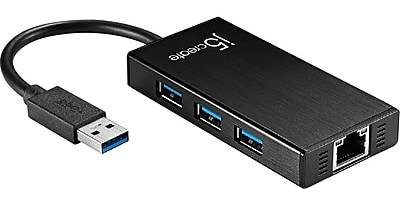 Expand your USB port to accommodate more accessories with this j5create USB hub. Connect up to three additional USB devices to a single port by using this USB hub. The Gigabit Ethernet port of this j5create USB hub allows you to connect to LANs, and the sleek design increases portability. - Three USB 3.0 ports - Dimensions: 3.57H x 1.72W x 0.73D - Supports transfer speeds up to 5Gbps - Plug and play - One RJ-45 (Gigabit Ethernet) female output - Power mode: bus powered or self powered - Activity and link LED indicators