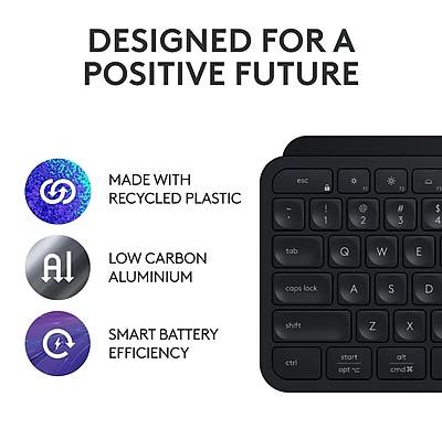 Master your flow like never before with the Logitech MX Keys S, a low-profile wireless keyboard that offers a fast, fluid, and precise typing experience, illumination, and customizable, time-saving Smart Actions. The MX Keys S also features smart backlighting that lights up as your fingers approach the keyboard and automatically brighten or fade to suit the time of day. Now you have more control of your backlighting brightness and duration with the Logi Options+ app. - Master your flow like never before with this low-profile wireless keyboard that offers a fast, fluid, precise typing experience, illumination, and customizable, time-saving Smart Actions - Connect via Bluetooth Low Energy or the included Logi Bolt USB receiver (not compatible with other Logitech USB receivers) - Dimensions: 5.18 x 16.94 - Compatible with Windows, macOS, Linux, ChromeOS, iOS, iPadOS, and Android operating systems - Connect with up to three devices via Bluetooth, and use the easy-switch keys to easily switch between the connected devices - Meets or exceeds the CarbonNeutral, FSC standards - Laptop-like profile with spherically-dished keys shaped for your fingertips delivers a fast, fluid, precise, and quieter typing experience - Easily create and share time-saving Smart Actions shortcuts to perform multiple actions with a single keystroke with the Logi Options+ app - Backlit keyboard keys light up and adapt to the environment as your hands approach it; now with more lighting customizations available via Logi Options+ app - Work for longer with a solid build, low-profile design, and an optimum keyboard angle that is better for your wrist posture - Quick charge the keyboard with the included USB Type-C charging cable: the keyboard stays powered for up to 10 days on a full charge or up to five months with backlighting turned off - Pair any MX wireless keyboard and mouse with Logi Options+, and seamlessly work or transfer text and files between up to three computers (Windows and macOS) - Plastic parts in this wireless keyboard include certified postconsumer recycled plastic (15%) - FileVault might be enabled on your macOS computer, which could prevent you from entering your password at start or reboot when connected to Bluetooth; in this case, use the Logi Bolt USB receiver - Comes in black - Features a rechargeable lithium-ion polymer (1500mAh) battery - Package contents: keyboard, Logi Bolt USB receiver, USB Type-C charging cable (USB Type-A to USB Type-C), user documentation