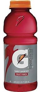 Keep your body better hydrated while working by stocking your break room refrigerator with these Gatorade fruit punch bottles. Reinvigorate your body after each extensive job-related task with this tasty fruit-flavored sports drink. The handy case of 24 bottle furnishes your system with much-needed carbohydrates and electrolytes. Formulated with natural flavors, these 20-ounce Gatorade fruit punch bottles make it easy for you to maintain optimal bodily hydration levels. - Sports drink in fruit punch flavor quenches thirst and refills minerals - Comes in capacity of 20 fl. oz. - Sold as 24 bottles per carton - Cool, satisfying taste helps energize and re-hydrate without caffeine - Carbohydrates and electrolytes stimulate rapid fluid absorption - A great source of hydration before, during, and after exercise