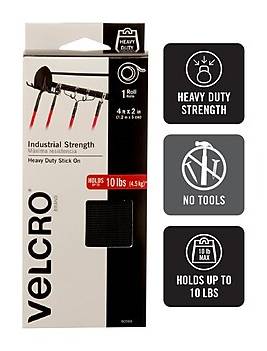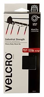 Heavy duty, water resistant adhesive provides superior holding power. Designed to adhere to most surfaces including plastic. Great for all types of indoor and outdoor projects which require a superior strength or waterproof fastener. The hook side is molded plastic rather than woven and the adhesive is waterproof. This package contains 4 feet of 2 inch wide black hook-and-loop tape. Imported. - Waterproof - Hook side is molded plastic rather than woven - Contains 4 feet of 2 inch wide hook-and-loop tape - Color: Black - Superior holding power indoors and out - Peel & stick - Adheres to most surfaces, including plastic - Safety Data Sheet