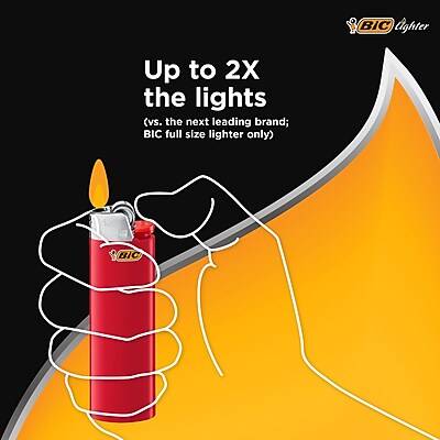 Spark up amazing moments with BIC Classic Pocket Lighters Made with pure isobutane lighter fuel, BIC Classic pocket lighters have up to 3,000 lights per lighter. The long-lasting quality of each disposable lighter allows BIC to give you up to 2x the lights vs. the next leading brand; BIC Full Size lighter only. Every BIC pocket lighter undergoes more than 50 separate, automatic quality checks during the manufacturing process, and they meet or exceed lighter safety standards established by federal organizations. Each lighter is child-resistant*, so you can comfortably use this lighter at family gatherings. Whether you’re lighting a birthday candle or staying prepped for an emergency, BIC Lighters are there for you. Looking for a go-to lighter? This pack of lighters has you covered with dependable BIC lighters for any situation. Check out the Special Edition Lighter Series to find unique lighters to match every mood. BIC lighters have it all – quality, design and style. *No lighter is child-proof. There is no substitute for proper adult supervision. Read all warnings before using this lighter - One 2-count lighter pack of BIC Classic Pocket Lighters in assorted colors. Colors may vary. - Safe, dependable, long-lasting lighters from America's No. 1 Lighter Brand - Durable, long-lasting disposable lighters made with pure isobutane fuel for a stable flame and a long life – up to 3,000 lights - Each BIC Classic Pocket Lighter will give you up to 2x the lights vs. the next leading brand; BIC Full Size lighter only - Each lighter undergoes more than 50 separate, automatic quality checks during the manufacturing process and meets or exceeds lighter safety standards - Comfortably use these child-resistant lighters* at family gatherings to light birthday candles for your little ones - No lighter is child-proof. There is no substitute for proper adult supervision. Read all warnings before using this lighter.