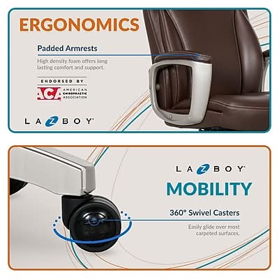 La-Z-Boy Arcadian Ergonomic Bonded Leather Swivel Executive Chair, Brown (60008)