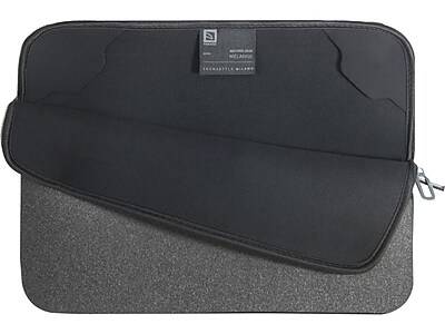 Secure 13 to 14-inch tablets with this Tucano Mélange Second Skin sleeve. Access your device easily using the dual zippers on this neoprene sleeve. Two interior flaps reduce movement, and the Anti-Slip System helps prevent drops during transportation. The durable neoprene material withstands external pressure and resists liquid damage, and the lightweight design adds minimal bulk. This Tucano Mélange Second Skin sleeve has a soft anti-scratch interior, providing protection against scuffs, and the flat-lock stitching offers a tight fit and slim profile. - Second-skin sleeve made of rugged 4mm black neoprene has been custom-made to protect the laptop against scratches, bumps, and falls - Designed especially for 13.3 up to 14 widescreen notebooks - Overall dimensions: 9.65H x 13.39W x 1.18D, weight is 0.2 lbs. - Features dual zippers for easy opening - Completed with the Anti-Slip System, an elastic cover positioned under the zipper to protect equipment from scratches and to prevent slippage - Perfect finishing with special flat-lock stitching to hold the extra slim effect - Carried on its own or as a complete protection inside another computer bag