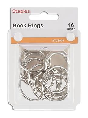 Gather papers together with this 16-pack of Staples 1-inch silver loose-leaf rings. Keep papers bundled with these silver loose-leaf rings. Each ring in this 16-pack is easy to use and holds pages secure; simply pull to open and squeeze to shut. Made of silver-colored steel, these rings are built strong to resist cracking or bending. These Staples 1-inch rings are ideal for bundling papers and can also be used to corral a variety of small items. - Simple to use and highly durable, metal book rings are perfect for keeping important papers in order - 1 Dia. - Gray/silver in color and made of steel for durability - These clips are sold in convenient packs of 16 This pack of sixteen Staples loose-leaf rings is great to have around the office. Use the steel rings to keep loose memos or reports together. You can even keep your office keys on a ring so that you don't lose or misplace them. Strong Build Each loose-leaf ring is made of steel. This gives you a strong ring that won't easily crack or bend. Easy to Open When you need to attach a project, simply pull the ring to open it. The rings are made to close by squeezing them, making it easy for you to attach your loose items. Keep Those Drafts Together When you've written notes on lined paper or have a rough draft of a several-page report, use these loose-leaf rings to keep them together and organized. You can even use a ring to keep all of your keys in one spot.