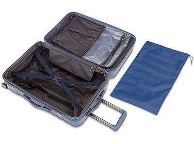 The American Tourister Cascade hardside carry-on spinner is perfect for a one- to three-day trip, it has everything you need to make your quick getaway stress-free and fun! The RightHeight handle system with multi-stop adjustments allows you to extend the handle to a height that's customized to you. This spinner provides smooth operation for hands of all kinds, featuring YKK Fuzion zippers that are effortless to use. - Beautifully designed ABS shell comes in slate blue with tonal gradient film that adds sophistication to the shell - RightHeight handle system with multi-stop adjustments allows you to extend the handle to a height that's customized to you - Overall dimensions: 22H x 15W x 9.5D; internal dimensions: 19.2H x 14.6W x 9.5D - Features a large split-case compartment, cross straps, wet pack pocket, and shoe pockets - Highly impact- and temperature-resistant ABS plastic is combined with a textured finish for the classic hardside look - Rolls confidently with wear and tear tested dual spinner wheels which deliver maximum stability and comfort - Provides smooth operation for hands of all kinds, featuring YKK Fuzion zippers that are effortless to use - Comes with a removable laundry bag - Case expands 1 for added packing capacity - Weight: 7.23 lbs. - 10-year manufacturer limited warranty - ⚠ WARNING: California Proposition 65 Warning. This product can expose you to chemicals including lead, which are known to the State of California to cause cancer and birth defects or other reproductive harm. For more information go to www.P65Warnings.ca.gov