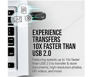 PNY's Turbo Attache 4 USB 3.0 flash drive is built for speed and convenience. USB 3.0 offers the same ease of use and plug-and-play capabilities as previous generations of USB technologies, but with dramatic speed improvement, providing transfer speeds up to 10 times faster than USB 2.0. PNY's Turbo Attache 4 USB 3.0 lightweight flash drive is designed with convenience and portability in mind, featuring a sliding collar design, which means no more lost caps. This USB 3.0 flash drive is small in size, but big on performance. - This flash drive is a perfect solution to easily store and quickly transfer large documents, high-resolution photos, HD videos, and more - Offers a 256GB storage capacity - Experience next-generation USB 3.0 speed performance with transfer speeds up to 10 times faster than USB 2.0 - Comes in black - Features a sliding collar design, which means no more lost caps - Compatible with USB 3.0 equipped host devices; backward compatible with USB 2.0 - Operating temperature: 32 to 140 degrees Fahrenheit - 1-year manufacturer limited warranty
