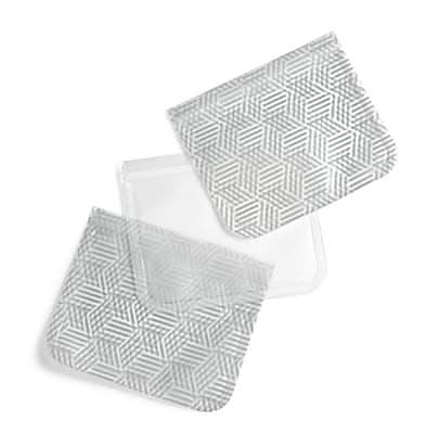 Fit & Fresh Reusable PEVA Sandwich Storage Bags Say goodbye to single-use plastic with our Reusable PEVA Bags! This set includes 3 versatile storage bags one clear + two gray geo patterned. - Crafted from a food-grade PEVA material, these reusable snack packs are non-toxic and BPA free. - Ideal for any occasion, these reusable snack bags can hold food, toys, office supplies, travel essentials, and more! Conveniently compact and versatile, our silicone pouches easily fit in drawers, lunch bags, purses, and travel kits. - Simply pack with your favorite fruit, veggie or snack and seal the leakproof pouch shut to prevent spills and messes! Thoughtfully designed with a double seal zipper for an airtight closure. - Hand wash with lukewarm water and mild soap, let air dry overnight for best results. - One eco-friendly, reusable bag equals 300 disposable bags! Not only safe for you but kind to the planet.