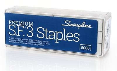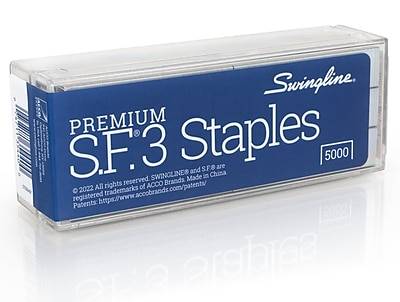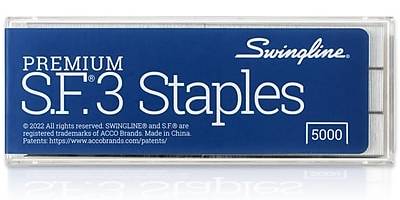 Fasten contracts, reports and various other documents together easily with this 5000-pack of Swingline S.F. 3 Premium half-strip staples. Bind paperwork together securely with minimal misforms by using these premium half-strip staples. The high-quality construction makes it simple to pierce through up to 20 sheets at a time for increased productivity, while the chisel-point tips reduce jamming and produce clean precise holes. These Swingline S.F. 3 Premium half-strip staples contain 105 per strip, making it easy to distribute supplies throughout the office. - S.F. 3 staples are specially designed for compact staplers; delivers top quality stapling performance. - 25 Sheets - Standard 1/4 leg length - 5,000 staples in each reusable storage box - 105 staples per strip, for use with compact/half strip staplers - 75% fewer misforms than the competition
