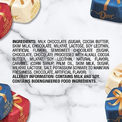 Get into the holiday spirit with not one, but three silky and smooth flavors of DOVE PROMISES. Unwrap these indulgent gifts of DOVE PROMISES Milk Chocolate, Dark Chocolate, and Caramel and Milk Chocolate Christmas Candy. This holiday assortment is made from the finest cacao and comes individually wrapped in festive holiday foil with a special message inscribed on each piece. It's two gifts wrapped in one. - One (1) 24-oz. bag of DOVE PROMISES Holiday Assorted Chocolate Candy - Enjoy the delight of DOVE PROMISES Chocolate Candy with an assortment of your favorite flavors - DOVE PROMISES Christmas Chocolates are a lovely addition to any holiday party favor - Each individually foil-wrapped chocolate has an uplifting message to brighten your day - DOVE Chocolates are a premium chocolate experience Enjoy DOVE PROMISES alongside hot chocolate for an afternoon pick-me-up on a chilly day. Fill candy dishes at home or the office with these festive foils for an uplifting and indulgent moment all holiday season long. From stocking stuffers to holiday dessert toppers, DOVE PROMISES make it easy to share the love with friends.