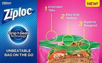 Pack lunches and keep snacks accessible with these Ziploc sandwich bags. Ziploc Sandwich Bags now feature our Easy Open Tabs. Whether you've got a big double-decker sandwich or a skinny PB&J, our Sandwich Bags are perfect for packing the sandwiches you love. Use these handy bags to bring recipe ideas to life, pack lunch for yourself and your family or just to keep snacks fresher for longer.​ Use these convenient sandwich bags to pack crayons on car trips, keep your school bag organized, and for smarter crafts storage. - Sandwich bags are ideal for packing sandwiches, pizza slices, subs, cookies, fruit, carrot sticks, chips and more - 90 Bags/Box - Easy Open Tabs for easier accessibility - Made from plastic - Dimensions: 3.75H x 7.68W - Use these handy sandwich bags to pack lunch for yourself and your family or just to keep snacks fresh and accessible - Sandwich Bags are ideal for packing a lunch, cookies, chips, fruit, or even organizing crayons and so much more - Great for grab-and-go snacking - Secure seal locks in freshness​. BPA free Sandwich bags are ideal for packing sandwiches, pizza slices, subs, cookies, fruit, carrot sticks, chips and more. Packaging: Reusable