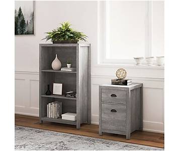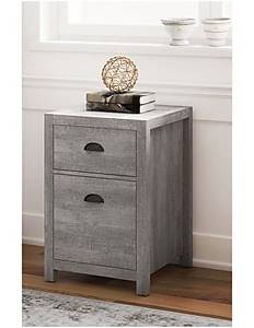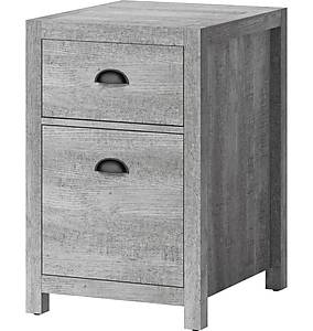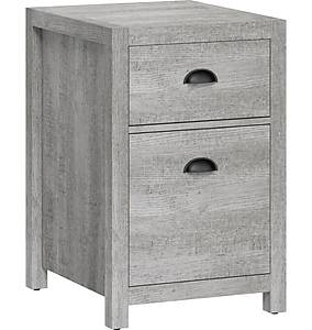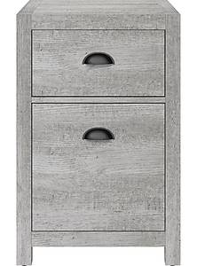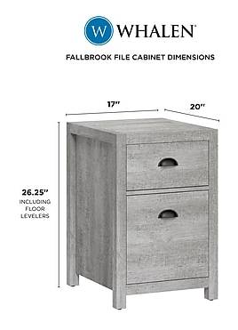 This Whalen Fallbrook two-drawer vertical file cabinet holds letter- or legal-size documents. It features a durable laminate construction and full-extension, ball bearing metal drawer glides. - Two-drawer vertical file cabinet holds letter- or legal-size documents - Durable laminate construction in smoked ash with black bin pulls - Dimensions: 26.25H x 17W x 20D - Full-extension, ball bearing metal drawer glides - Assembly required - One storage drawer and one file drawer - Adjustable feet keep the cabinet level on uneven floors - 1-year manufacturer limited warranty