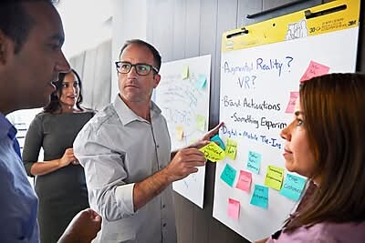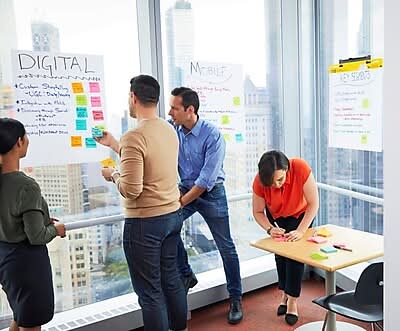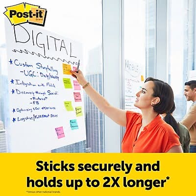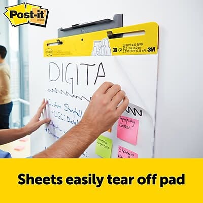 Post-it Super Sticky Easel Pad Holds up to 2X Longer It’s an amazing feeling when your team just clicks—everyone feels a shared drive toward success. But, how do you ignite that feeling on every team? Capture the spark at your next meeting with Post it Super Sticky Easel Pads. - Sticks securely and holds up to 10X longer - Easel paper can be repositioned without surface damage. No tape or tacks needed unlike standard flip chart paper. Keep agenda and ideas where everyone can see. - Ink-Bleed Through Resistant Paper - Large white recycled premium self-stick flip chart paper that resists marker bleed-through to keep great ideas on the page, not on what's under the page. Made with 30% recycled material. - Ideal for brainstorming and managing projects - Perfect for training or teaching sessions, brainstorming sessions, planning sessions, project management and agile processes, meetings and presentations. - Download the free Post-it App - Stop spending hours transcribing notes after a brainstorm; download the free Post-it App. Now you can instantly capture and save your work so you can share notes with your team without recaps or delays. - Large White Premium Paper - 25 in. x 30 in., 30 Sheets/Pad, 2 Pad/Pack - Designed to fit many easel stands - Sturdy backcard has a handle to make the easel pad portable and slots to fit most easel stands. Perfect for student activities and training sessions. - Use with Post-it Super Sticky Notes - The large, stickable paper to capture thoughts with Post-it Super Sticky Notes. Give ideas a place to grow. - Explore Options- Post-it Super Sticky Easel Pads are also available with Grid Lines, Lines, Bright Yellow, and White Recycled Paper. - Explore Sizes - Post-it Super Sticky Easel Pads also available in more sizes - Mini Easel Pad, Tabletop Pad and Wall Pad. - USA - Made in the USA with globally sourced materials. Adhesive backed sheets stick and restick to hold up to 2X longer* to most wall surfaces, unlike flip chart paper. The paper resists marker bleed through so you can capture input by writing directly on the sheet. Use with Post it Super Sticky Notes to organize ideas. Whenever you want to brainstorm, present, or track projects, they're ready to help you succeed.