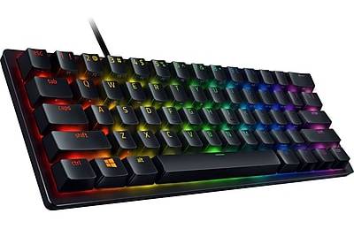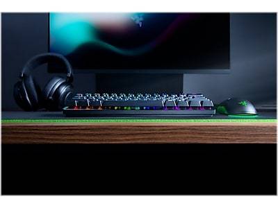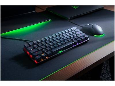 Enter a new dimension of deadly with the Razer Huntsman Mini, a 60% gaming keyboard with cutting-edge Razer optical switches. Highly portable and perfect for streamlined setups, this keyboard allows you to experience lightning-fast actuation in a compact form factor. The Razer Huntsman Mini doesn't have the function row, home cluster, and numpad of a traditional full-size keyboard, yet loses no functionality because all these inputs are still accessible via secondary functions and shortcuts. Perfect for minimalist or smaller setups where desk space is a premium, the keyboard's compact build also means it travels well and is easier to position when gaming, allowing you to play more comfortably. The casing of this gaming keyboard is robust enough to withstand long hours of intense, regular use and has a clean matte finish. Enjoy greater immersion with dynamic lighting effects that occur as you game on over 150 Chroma-integrated titles, such as Fortnite, Apex Legends, Warframe, and more. - Highly portable mini gaming keyboard with cutting-edge optical switches is perfect for streamlined setups - Detachable USB Type-C cable latch ensures that the keyboard stays securely connected during gameplay - Designed for greater durability, the key caps on this 60% gaming keyboard have a premium, textured quality that withstands intense use - Side-printed secondary functions added for easier reference when executing commands and hot keys - Take your settings anywhere as you store and activate up to five keyboard profiles without the need for software, and personalize them further with a preloaded suite of Razer Chroma RGB lighting effects - Aluminum construction in a clean matte finish is robust enough to withstand long hours of intense, regular use - Fully programmable keys with on-the-fly macro recording - Features an N-key rollover with built-in anti-ghosting, gaming mode option, and 1000Hz ultrapolling - Comes in black - Safety Data Sheet
