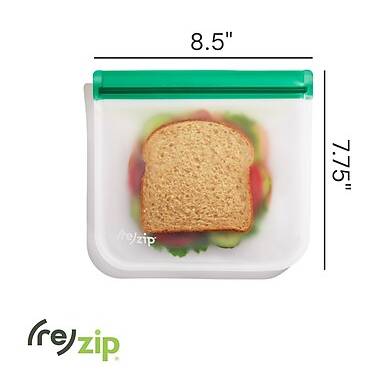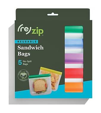 Lunch made easy: leakproof, reusable, and waste-free. Keep your sandwiches, wraps, and snacks fresh and mess-free with these airtight, leakproof reusable bags. This 5-pack of vibrant, color-coded bags makes organizing by day, person, or diet easy. Lightweight, durable, and easy to clean, they’re perfect for school lunches, office meals, picnics, and snacking on the go. Winner of the 2022 Best for On-the-Go NAPPA Award. - Double-Lock, Airtight Seal: A satisfying click confirms a secure, impenetrable seal, meticulously preserving freshness and ensuring zero leaks to keep your lunch contained and your bag spotless. - Dimensions: 8.5 x 7.75 - Durable & Safe Materials: Made from 100% BPA-free, lead-free, phthalate-free, and food-grade PEVA - Secure & Leakproof: Features a double-lock closure that clicks when closed, creating an airtight seal, locking in freshness and making them completely leakproof. - Kid-Friendly & See-Through: The translucent design makes it easy to see what’s inside—perfect for helping kids pack their own lunches with confidence. - Dirt-Resistant & Easy to Clean: Bags resist dirt buildup and wipe clean effortlessly when they fall on the ground, keeping your belongings safe and mess-free. - Versatile Use: Ideal for a loaded sandwich, 2 grilled chicken breasts, snacks, meal prep, travel essentials, and more. - Freezer & Refrigerator Safe: Keeps sandwiches, lunch items, and leftovers fresh—whether you're prepping ahead or storing extra portions. - Vibrant 5-Pack: Comes in five bright, color-coded bags to keep food organized and easy to identify. - Handwash is recommended for best results. Add a drop of dish soap with water to your bag. Seal it up and shake it around. Rinse thoroughly. (re)zips are top-rack dishwasher safe on a standard setting. - To extend the life of the bag, handwash with warm, soapy water and a non-abrasive sponge. Dishwasher safe – temperature must not exceed 102°F. Prop open to dry.