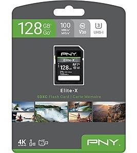 PNY Elite-X 128GB SDXC Memory Card, Class 10, UHS-I, V30 (P-SD128U3100EXG)
