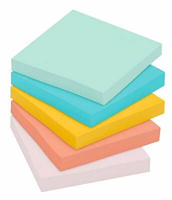 Imagine yourself at the shore with the coastal tones of the Beachside Café collection. These sticky notes feature a unique adhesive designed for use on paper or in planners. Post-it Notes stick securely yet remove cleanly without damage. Keep your ideas across your notebooks, classroom books, calendars or other documents. No tape or tacks are needed with adhesive notes, saving you money and time on office products or school supplies. Ideal for writing notes or reminders to yourself or others, Post-it Notes are the perfect solution for time tracking, to-do lists, marking cables, color-coding documents, reminding kids to do chores, storyboarding and more. All Post-it Notes are sourced from certified, renewable and responsibly managed forests. You can also recycle them when they are no longer needed. Each sticky notes sheet is approximately 3 in x 3 in, with 5 pads per pack, 100 sheets per pad in Fresh Mint, Aqua Splash, Sunnyside, Papaya Fizz, Pink Salt. - GET ORGANIZED: Each pack includes 5 pads of 3 in. x 3 in. notes, with 100 sheets per pad, great for your office, work area, or classroom - STICKY NOTES: Post-it Notes are versatile, perfect for calendars, planning, quick reminders, daily planners, visual aids, labeling, marking dates, bookmarks, and more - IDEAL FOR: Post-it Notes are the perfect solution for reminders, time tracking, to-do lists, marking cables, color-coding documents, reminding kids to do chores, storyboarding and more - NO SURFACE DAMAGE: Post-it Notes stick securely and remove cleanly; no tape or tacks are needed, and the adhesive backing of these reusable sticky notes allows for easy repositioning - VARIOUS SIZES AND SHAPES: Available in different sizes, with or without lines, to cater to your specific needs - EYE-CATCHING COLORS: Vibrant and colorful reminders are more likely to grab attention and be noticed - INTRODUCING THE BEACHSIDE CAFÉ COLLECTION: Imagine yourself at the shore with the coastal tones including: Fresh Mint, Aqua Splash, Sunnyside, Papaya Fizz, Pink Salt - EXPLORE OUR COLLECTIONS: With 11 color collections, the Post-it Brand offers a wide range of options to suit every style and preference, whether at home, in school, or at the office - ORIGINAL CREATOR: The one and only Post-it Note was originally created by Post-it Brand - RECYCLABLE: All Post-it Notes are sourced from certified, renewable and responsibly managed forests; also, Post-it Notes are recyclable - AMERICA'S #1 FAVORITE STICKY NOTE: You're more likely to achieve your goals when you write them down