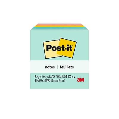 Post-it Sticky Notes, 3 x 3, Beachside Cafe Collection, 100 Sheets/Pad, 5 Pads/Pack (654-5AST)