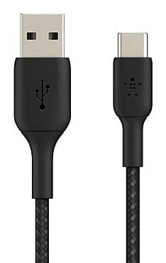 Charge and sync music, photos, or data on your USB-C devices from any USB-A port. This reliable cable is perfect for use at home, work, or on the road. It supports standard charging up to 15W, is USB-IF certified, and has a premium double-braided nylon exterior. - Reliable USB‑C to USB‑A Connectivity – Seamlessly connects your USB‑C devices to legacy USB‑A ports across laptops, wall chargers, vehicle adapters, and more - perfect for modern-to-legacy compatibility. - Compact 1m / 3.3 ft. Length – Ideal for desktop setups, travel, or on-the-go use - delivers convenience without unnecessary cable clutter. - 15W Fast-Charge Support (5V/3A) – Provides efficient charging up to 15W, capable of charging devices like the Samsung Galaxy S23 Ultra from 0% to 50% in about 45 minutes. - Premium Double‑Braided Nylon Exterior – Durable braided nylon jacket resists fraying and tangling, offering long-lasting strength and resilience for everyday use. - Tested to Withstand 30,000+ Bends – Rigorously engineered and tested to endure over 30,000 bend cycles, ensuring this cable withstands regular wear and tear. - USB‑IF Certified for Safe & Reliable Performance – Fully certified by USB‑IF to meet strict electrical, mechanical, and environmental standards for secure charging and data transfer. - USB 2.0 Data Speeds up to 480 Mb/s – Enables quick syncing of files, music, photos, and videos between devices via any USB‑A port. - Universal Compatibility – Works with a wide range of USB‑C devices-including smartphones, tablets, power banks, and laptops-for versatile usage. - Sleek Black Finish – Matte black design blends seamlessly with modern tech setups and professional workspaces. - Backed by a 2‑Year Warranty – Supported by Belkin’s 2‑year warranty and dedicated customer service for long-term reliability.