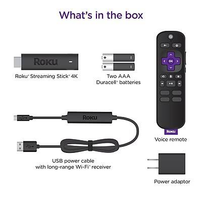 Roku Streaming Stick 4K is faster and more powerful than ever. Access hundreds of entertainment apps at up to 4K UHD resolution with HDR support with the Roku Streaming Stick 4K. Its compact 0.8 x 3.7 x 0.5 design makes it suitable for connecting to wall-mounted displays. Once plugged into a display's HDMI port, the Streaming Stick 4K will connect to the internet via its built-in Wi-Fi connectivity and is controllable via the included remote control, an Android or iOS smart device app, or via the Google Assistant, Alexa, or Siri. - Type of Product: Streaming Stick - Interface/Connectivity: HDMI - Overall Dimensions (W x H x D): 0.8 x 3.7 x 0.5 / 21.1 x 94.5 x 11.5 mm - HDR10, HDR10+, Dolby Vision, Hybrid Log Gamma - Google Assistant, Alexa, Siri Control - DC Input Power 5 VDC at 1.5 A - HDR10, HDR10+, Dolby Vision, Hybrid Log Gamma - Stream Hundreds of Entertainment Apps - Integrated Dual-Band Wi-Fi 5 - Upscales 720p and 1080p to Near-4K - Android and iOS App Control - Voice Search via Remote - Safety Data Sheet