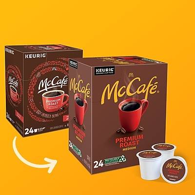 Enjoy the café McCafe experience at work or on-the-go with the rich aroma and delicious taste of this 100% Arabica coffee. - McCafe Premium Blend K-Cup pods - 24 K-cups per box - 100% Arabica coffee - Smooth and Balanced - Undergoing packaging transition: packaging may vary Packaging: Reusable