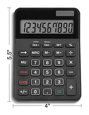 Calculate business figures and handle accounting tasks with this Staples 10-digit display desktop calculator. Equip your work desk with this desktop calculator. The 10-digit LCD screen offers clear and easy read-outs, while the angled screen provides hassle-free viewing. Convert currencies and perform tax calculations with the multifunction design. This Staples 10-digit display calculator shuts off automatically when not in use to preserve power and uses both solar and battery power for uninterrupted calculations. - Desktop calculator with easy-view 10-digit angled LCD display - Currency conversion, markup, and tax calculation functions - Dimensions: 4W x 5.55D x 1.22H - Two-way power: solar and battery – perfect for day or night - Percent, sign change, backspace, and three memory store keys (17 function keys total) - Automatic shut off - 1-year manufacturer limited warranty - Product Instructions