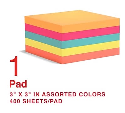 Staples Sticky Notes, 3 x 3 Assorted, 400 Sheets/Pad, 1 Pad/Pack (S-33BRC/52557)