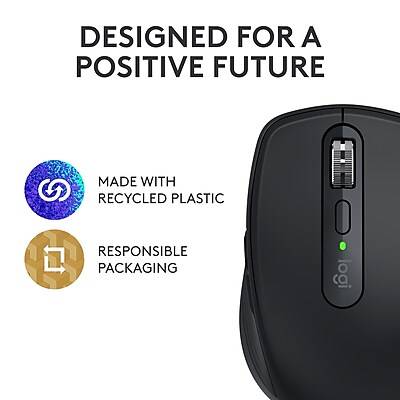 Introducing the Logitech MX Anywhere 3S, a beloved compact wireless mouse with next-level precision and control. Now with Quiet Click buttons that deliver a satisfying tactile feel with less click noise (compared to MX Anywhere 3). The MX Anywhere 3S also comes with an 8000 dpi optical sensor for next-gen responsiveness on any surface, including glass (0.16 minimum glass thickness). MagSpeed electromagnetic scrolling delivers remarkable speed, precision, and near silence, with the ability to scroll 1000 lines per second. The low-profile design is contoured for your hand. The Logi Options+ app enables Flow cross-computer control and introduces more customizations than ever. The MX Anywhere 3S stays powered up to 70 days on a full charge and delivers three hours of use from a one-minute quick charge. - This optical mouse tracks anywhere, goes anywhere, and works on any surface, including glass (0.16 minimum thickness) - Connect with Bluetooth Low Energy for flexible connectivity; compatible with Logi Bolt USB receiver (sold separately) - Stays powered up to 70 days on a full charge and lasts up to three hours off a one minute charge; charge while you work with the included USB-C cable - Stays powered with Quick Charging for up to 70 days on a full charge and lasts up to three hours off a one-minute charge with the included USB Type-C cable - Connects to up to three devices via Bluetooth - The wireless mouse is engineered for Intel Evo, which verifies that it meets technical specifications for optimal Bluetooth connection; no dongles, no wires, no hassle - With the 200-8000 dpi sensor (can be set in increments of 50 dpi), you can cover more ground with subtle movement - Compatibility: Windows, macOS, ChromeOS, Linux; works only with a Logi Bolt USB receiver (receiver not included) - Programmable buttons for personalized setup, speed, and enhanced functionality - Quiet Clicks keep the same satisfying feel but with less click noise (compared to MX Anywhere 3) for less distraction and more focus - Scroll 1000 lines per second with MagSpeed, the brand's fastest and most precise scroll wheel - Work across devices, set tracking speed, customize buttons, and use ready-made app-specific customizations with the Logi Options+ app - Made with recycled plastic in black: plastic parts in the mouse include certified postconsumer recycled plastic (78%) - Six buttons: left/right click, back/forward, wheel mode shift, middle click - Features a rechargeable lithium-ion polymer (500mAh) battery - Package contents: mouse, USB Type-C charging cable (USB Type-A to USB Type-C), user documentation