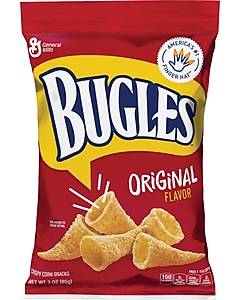 Enjoy a crispy treat during office break time with the Bugles original-flavored corn chips. Make snack time a fun experience with this crispy corn snack. These horn-shaped chips in the original corn flavor offer a delicious experience for employees and customers during quick snack breaks. Packaged in a 3-ounce bag, these Bugles Original corn chips are ideal for travel and stocking in a vending machine, office pantry, or hotel room snack bar. - Original crispy corn chips with a fun bugle shape - No cholesterol or trans fats - 3 oz. bag - Serving size: one bag - Perfect for the office break room or on-the-go snacking - Ready-to-eat