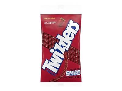 Satisfy your sweet tooth with these Twizzlers strawberry twists. Reach for these twists when you want a chewy treat. These candies have a rich strawberry flavor and are low-fat for a guilt-free treat. This 7-ounce bag of Twizzlers strawberry twists is perfect for keeping at your desk for a quick snack. - Soft, chewy texture for a delicious snack - 7 oz. package - Artificially flavored strawberry twists