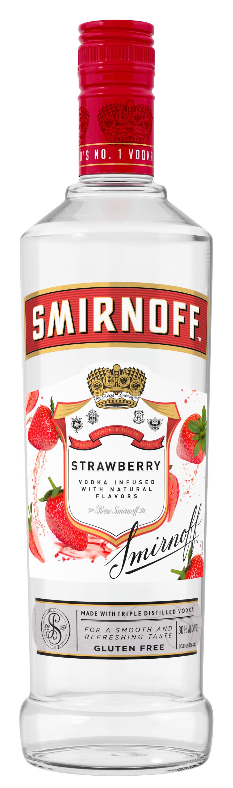 Infused with natural strawberry for a juicy berry finish, it is perfect for your next cocktail party. This 60 proof spirit is smooth enough to drink on the rocks or in a round of shots. Simply mix this spirit with soda, lemonade, or cranberry juice for a delicately sweet, refreshing-tasting mixed drink that's quick and easy to make. • Brand: Smirnoff • gluten-free • Alcohol by volume: 35% • Diageo, Norwalk, CT • Packaging: Reusable