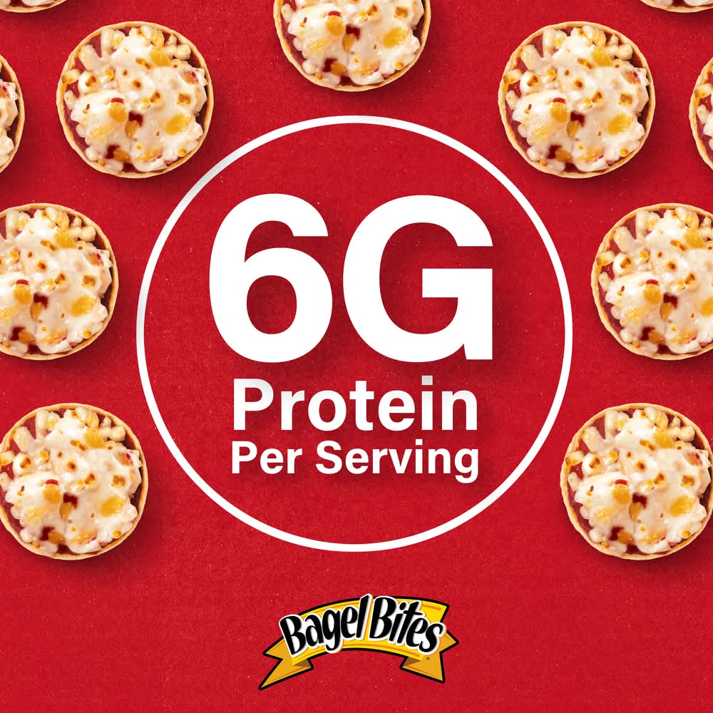 Bagel Bites Three Cheese Pizza Snacks offer a quick and easy snack that kids love and parents can easily serve. Our mini pizza bagels are topped with mozzarella cheese, cheddar cheese, Monterey Jack cheese and tomato pizza sauce for a mouthwatering flavor that excites taste buds. Whenever you serve our mini pizza bagels, they're always a hit. Try our frozen appetizers at a party or as an after school snack. Each serving of Bagel Bites has 6 grams of protein and contains 0g trans fat, and no artificial flavors or high-fructose corn syrup. Suggested serving size is 4 pieces (88g). Cook them in an air fryer, oven or toaster oven for a crispy finish, or microwave them for a quick snack. Each 9-count box of Bagel Bites Three Cheese Pizza Snacks includes a convenient microwavable crisping tray for easy prep. Keep our mini cheese pizza bagels frozen until ready to eat. • Flavor: Cheese • Kraft heinz foods company, Pittsburgh,PA,15222