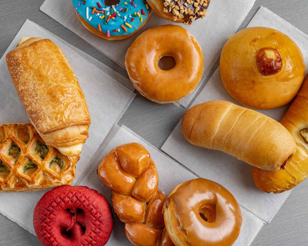 Choose a protein: bacon, sausage.Yeast Raised Donuts