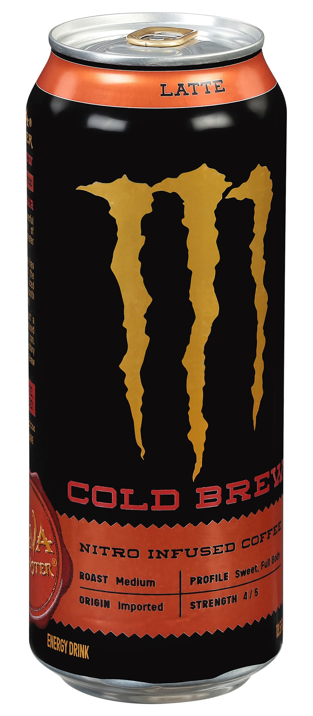 Energy Drink, Latte, Cold Brew • Brand: Monster java • kosher • Monster Energy Company, 1 Monster Way, Corona, CA, 92879 • Packaging: Reusable