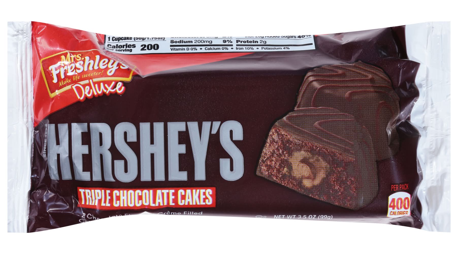Cakes, Triple Chocolate, Deluxe, Hershey's • Brand: Mrs. freshley's • kosher • Number of servings: 2