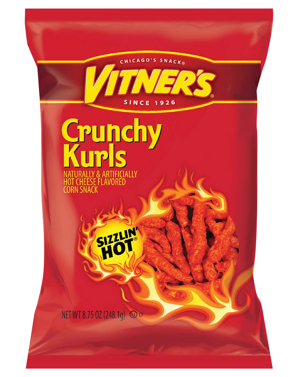 Vitner's Sizzlin' Hot Crunchy Kurls Corn Snack, Hot Cheese (8.75 oz)
