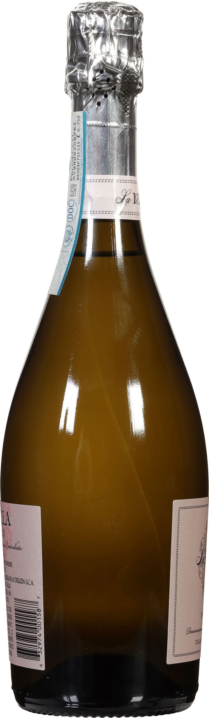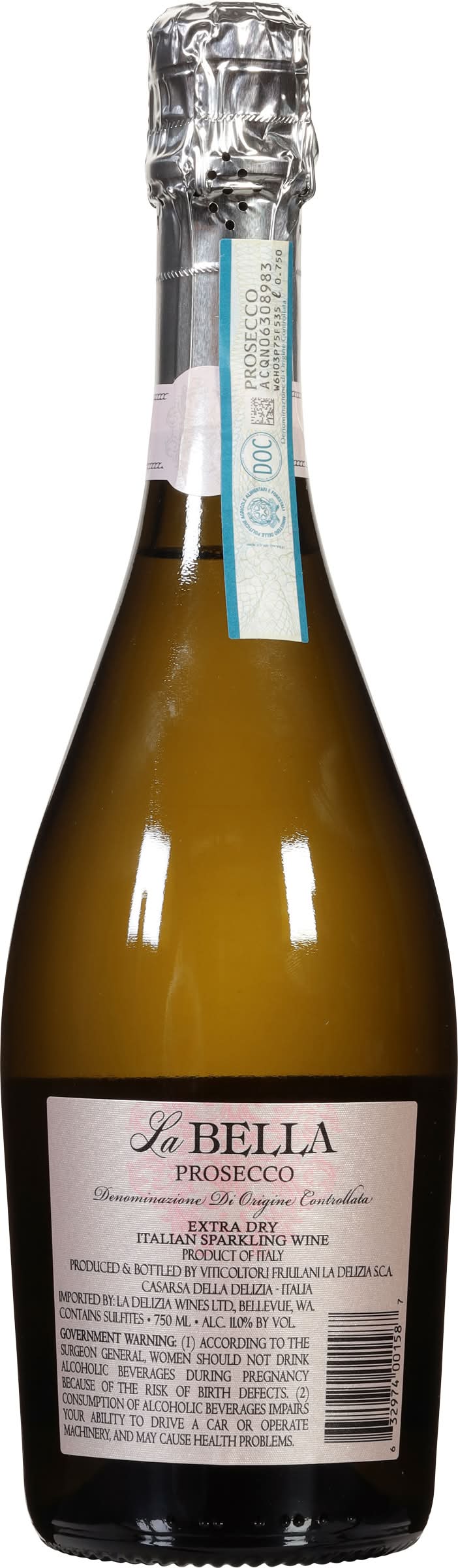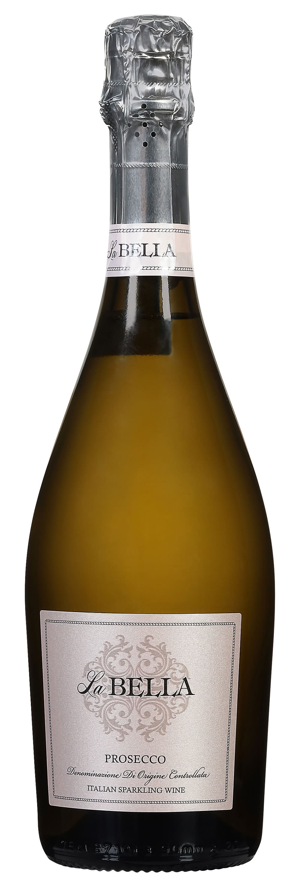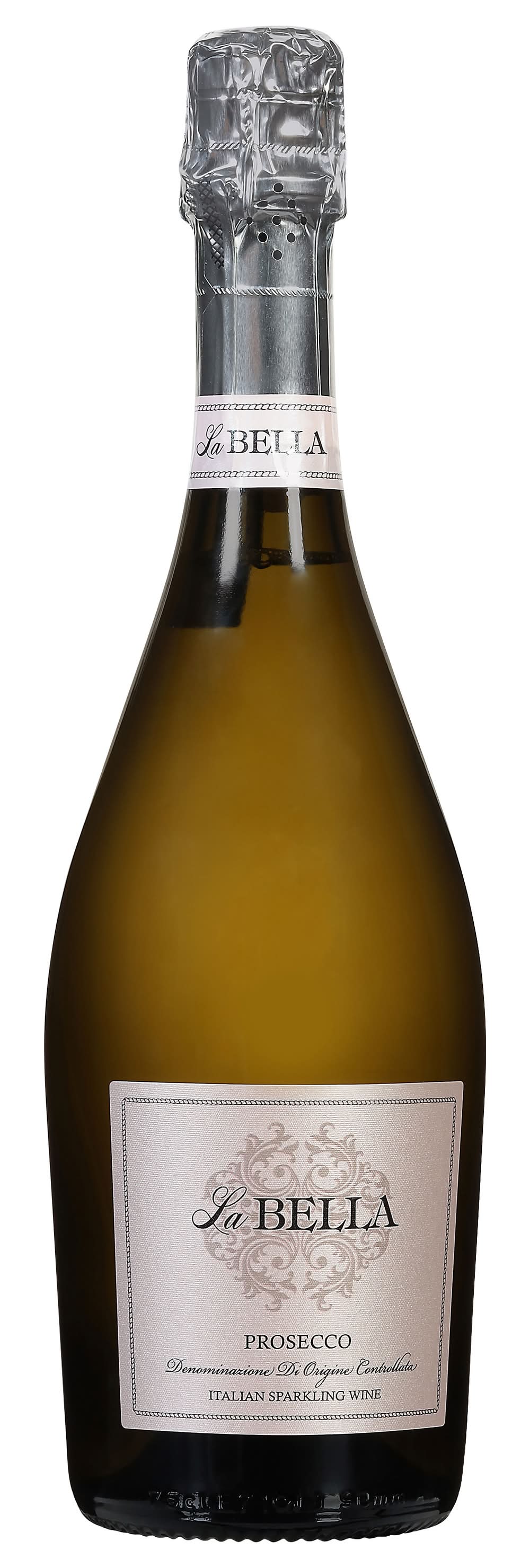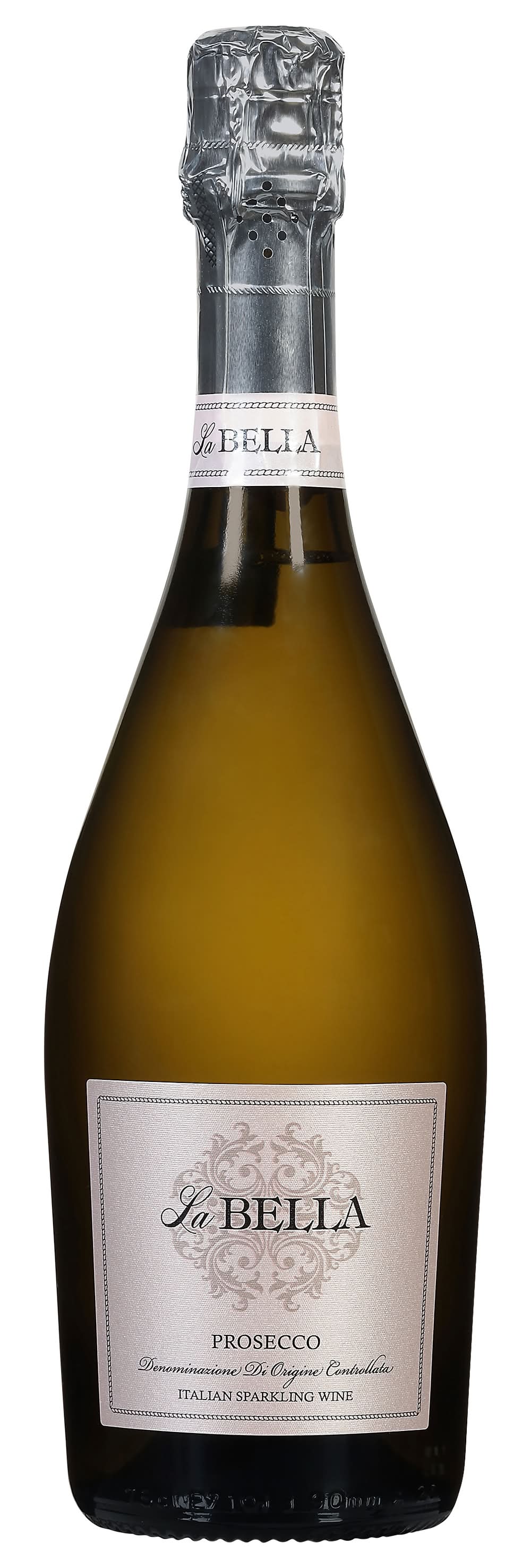 La bella prosecco offers a crisp and fruity flavor profile with distinctive aromas and notes of apple and peach, presented in a sparkling wine format. Alcohol by volume: 11%