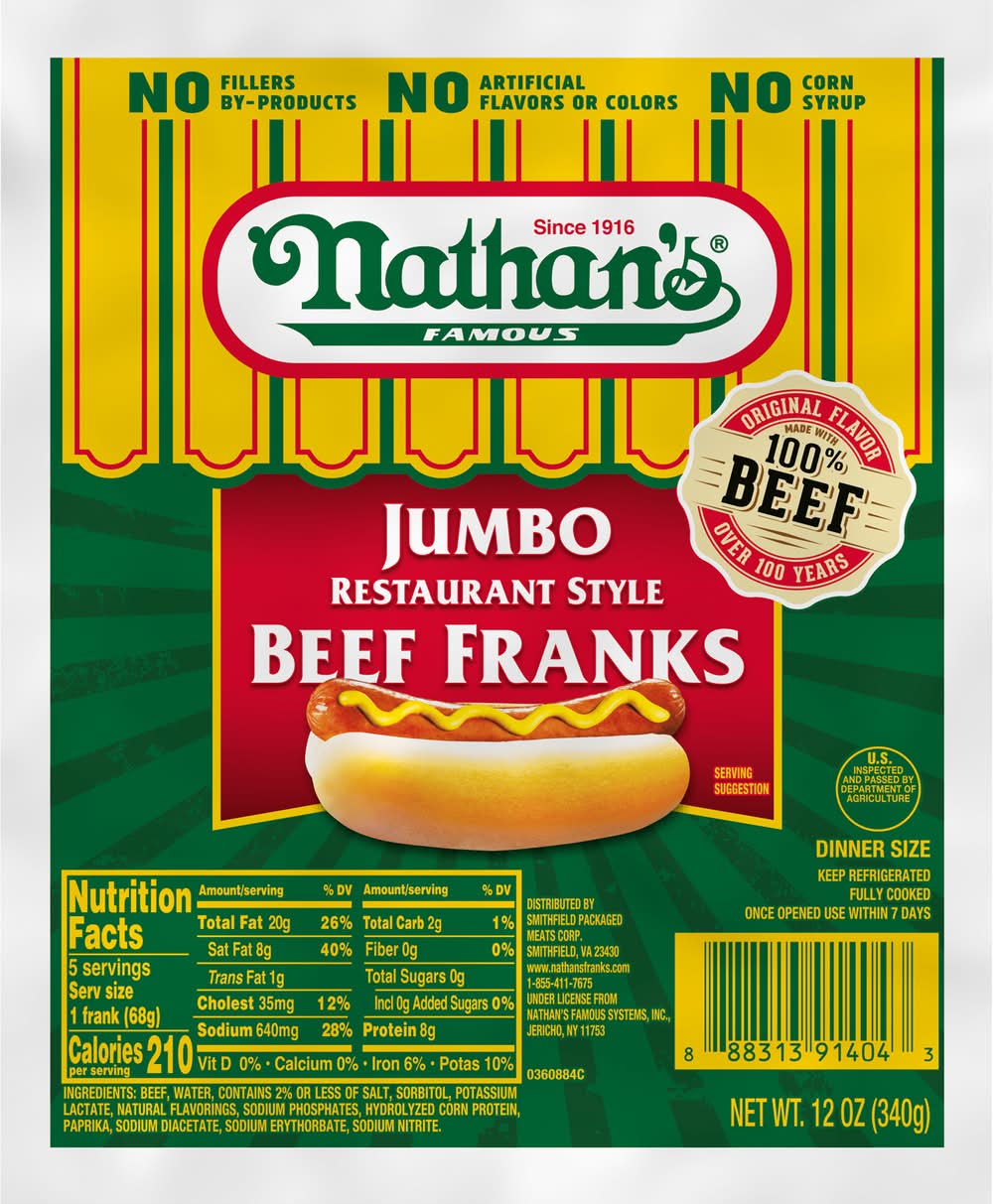 Nathan's Famous Restaurant Style Beef Franks, Jumbo (12 oz)