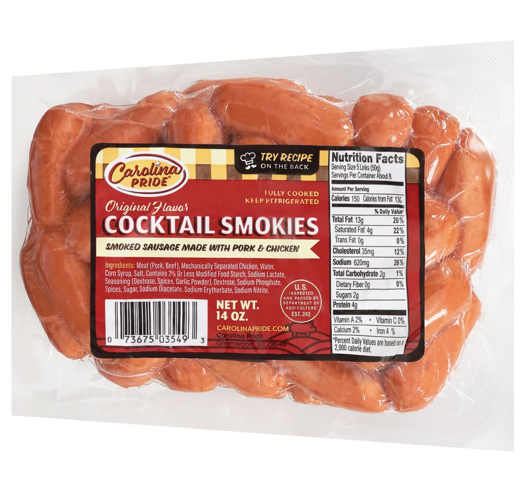 Cocktail Smokies, Original Flavor Carolina Pride Foods, Greenwood, SC 29648