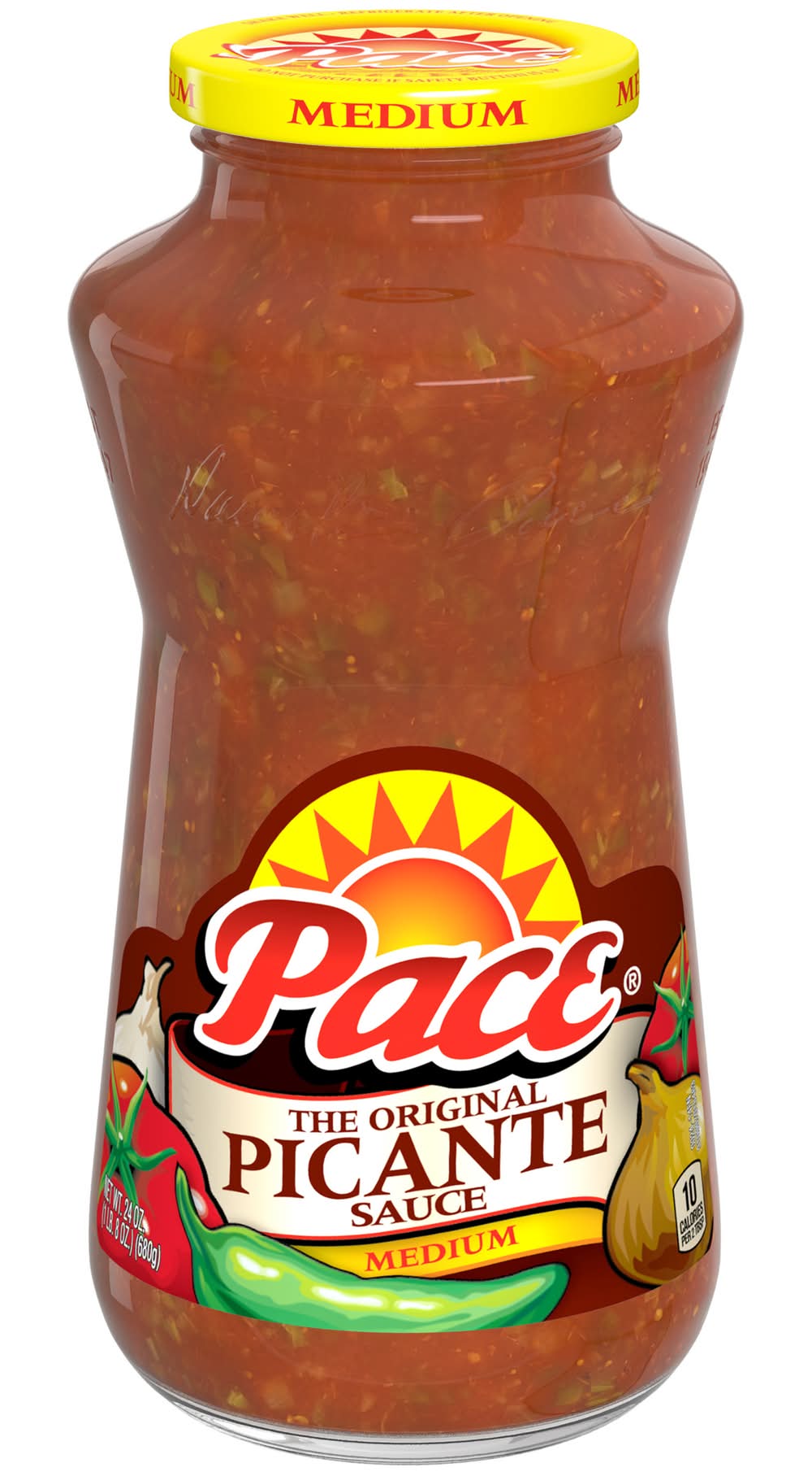 Get ready to fire up your taste buds with Pace Medium Picante Sauce, the ultimate flavor enhancer that guarantees to liven up any dish. With over 75 years of legendary flavor, Pace is the trusted, iconic brand that never compromises on quality. No artificial colors, flavors, or preservatives—just the real deal. Cinco De Mayo party? Tailgating before the big game? Or perhaps a sizzling summer grilling session? Pace Medium Picante Sauce is your go-to companion for all these occasions. Made with handpicked Jalapenos and ripe tomatoes, this sauce will kick-up your culinary creations with an exciting flavor that's authentically adventurous. Perfect for dipping tortilla chips, topping tacos, or drizzling over nachos, this picante sauce is versatile enough to elevate any meal. Whether it's taco Tuesday or a laid-back patio moment, Pace Medium Picante Sauce is here to make every bite an adventure. This sauce isn't just for dipping—use it as a cooking sauce to add a punch of flavor to your Mexican food favorites, from quesadillas to enchiladas. So why wait? Pick up the Pace and turn your next meal into a fiesta of flavor. With Pace Medium Picante Sauce, every dish is a celebration, every bite a journey. Let's get dipping, topping, and cooking with the sauce that brings excitement to your table. Packaging: Reusable