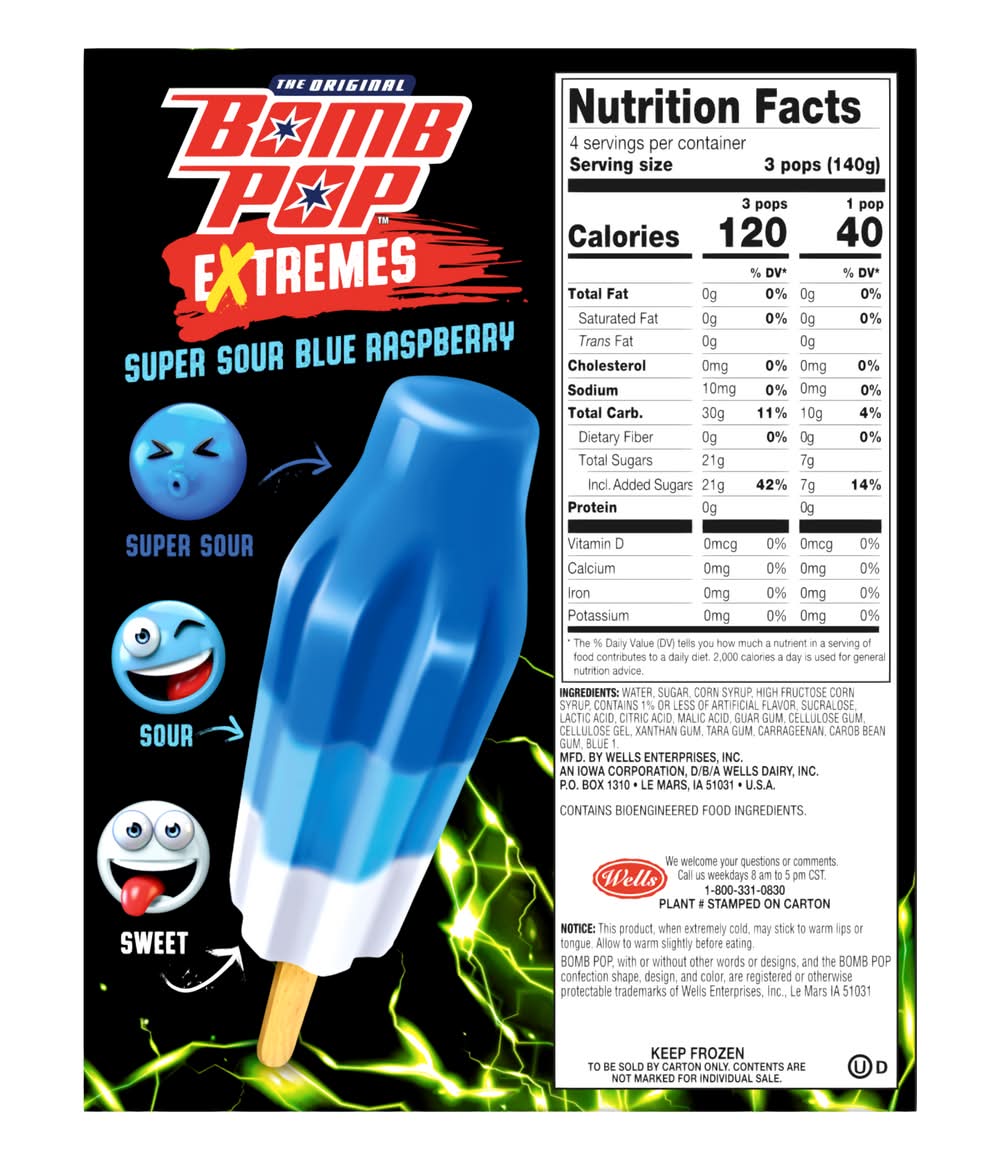 Bomb Pop The Original Extremes Freeze Ice Pops, Blue Raspberry (1.75 fl oz, 12 ct)